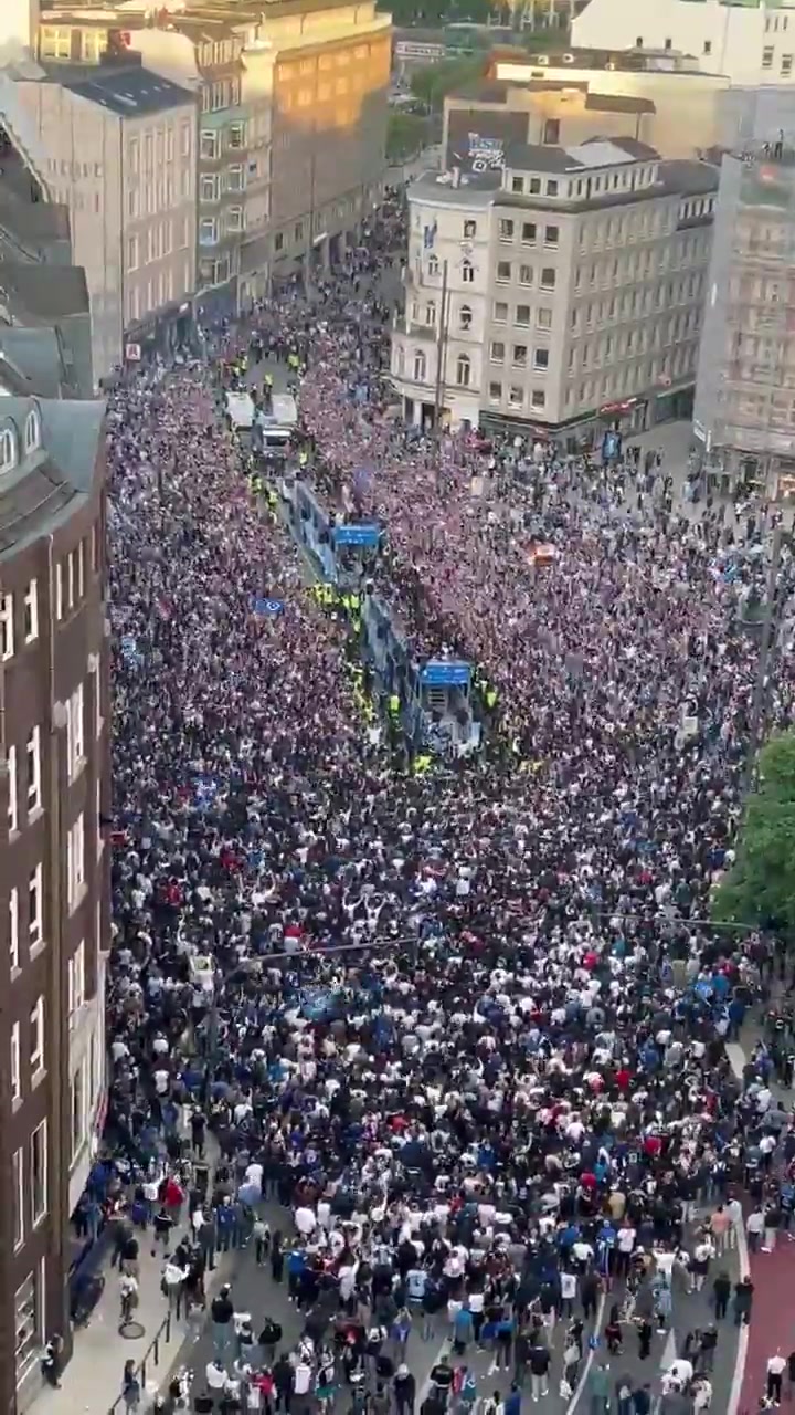 据图片报报道,在当地时间5月19日下午,汉堡进行了游行。有10万球迷参与庆祝。